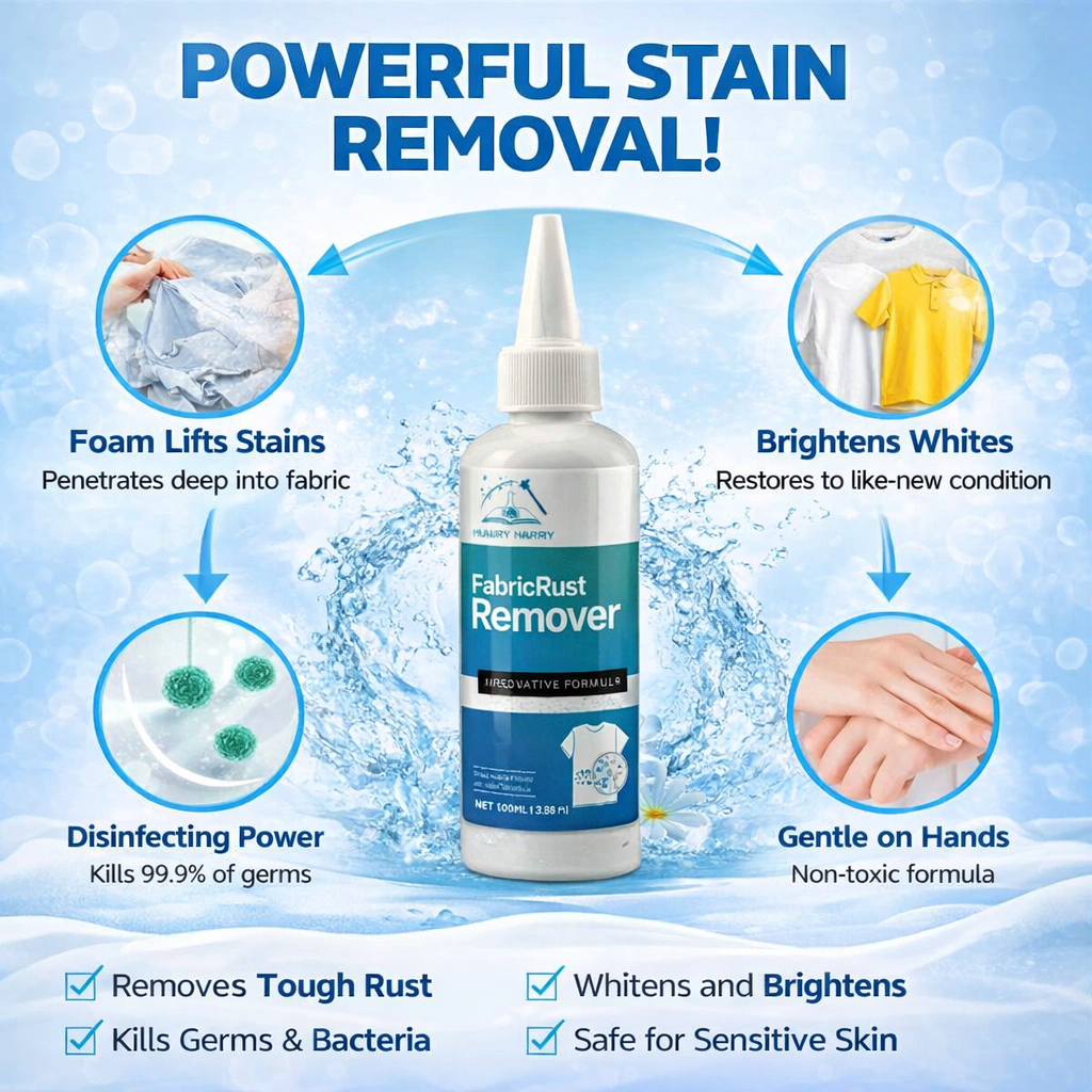 Tired of stubborn stains that won’t come out no matter how hard you scrub? Our powerful, fast-acting formula works instantly to break down deep-set stains like wine, coffee, ink, and grease without damaging your fabrics. No more wasting time scrubbing or throwing away clothes you love — this advanced solution restores them to a clean, fresh, like-new condition in seconds. Safe on all fabrics and gentle on your hands, it leaves no residue, no fading, and no damage behind. It’s the smart, time-saving way to keep your clothes looking perfect while saving money, effort, and frustration every single day.